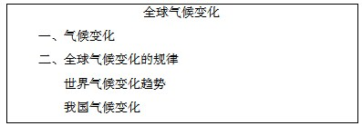 首先我会请学生阅读课本第一段文字内容并提问学生:(1)什么是气候变化,主要表现是什么?(2)气候变化划分几种类型?