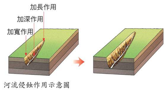关键词:地壳抬升、溪流下切、河流两岸、水流