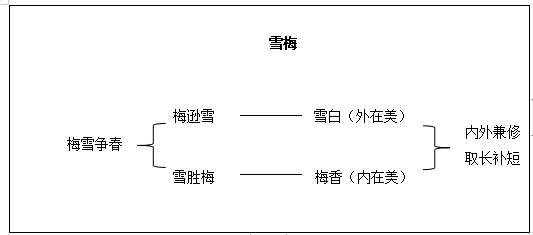 4.领悟梅、雪取长补短的启示,学习梅花美不在外表而在于内在修养、品格高洁的精神。