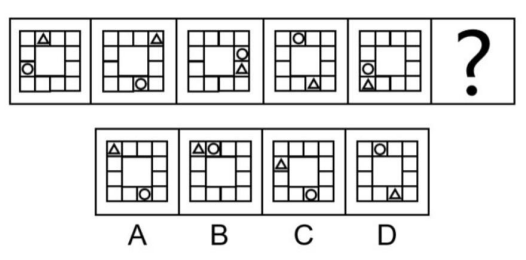 三角形每次顺时针移动两步,圆形每次逆时针移动三步