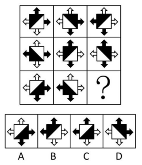 【例题】从所给的四个选项中,选择最合适的一个填入问号处,使之呈现一定的规律性()